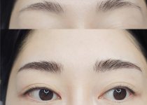 눈썹 산과 꼬리까지 자연스럽게 분산시킨 여자 반영구눈썹